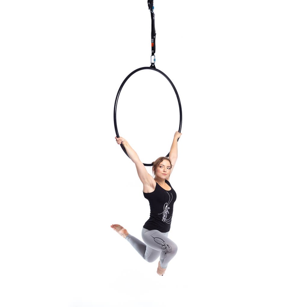 A gyűrű felakasztásához legalább 2 karabiner szükséges a szíjhoz: 1 karabiner köti össze az övet a mennyezet egy pontjával, 1 karabiner köti össze a szíjat a szíjtárcsával és lehetővé teszi a magasság változtatását.