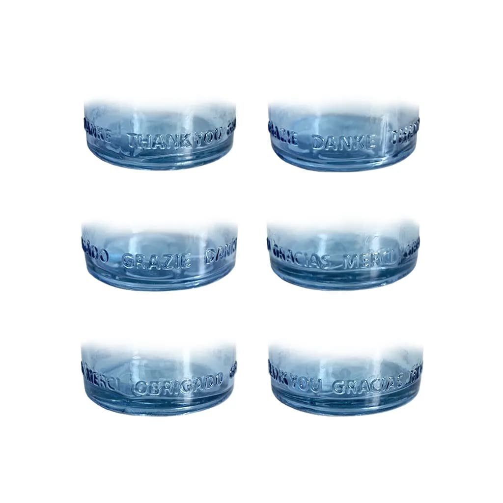 Az OM szimbólummal ellátott, 6 nyelven "köszönöm" feliratú üvegpalack 100%-ban újrahasznosított üvegből készült, nehézfémek nélkül. A palackban az OM szimbólum (a teremtés hangja), a víz szolarizálására szolgáló kék szín, az alulról az élet virága szimbólum kombinálva pozitívan emeli a víz és az azt használók rezgését.