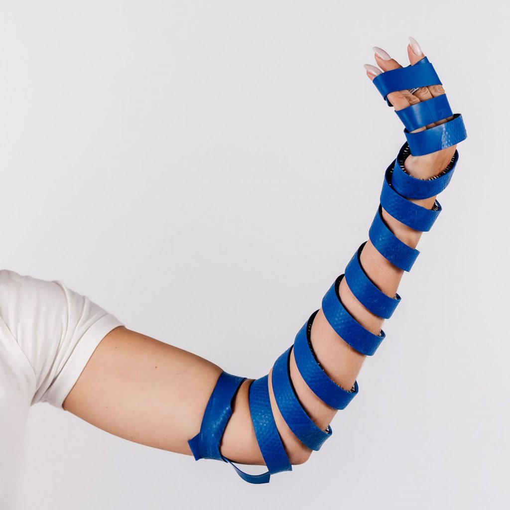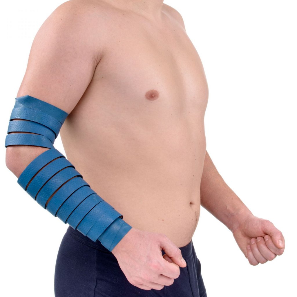 Egyik részén tűk találhatók, míg a másik részén egy rugalmas gumikötés szolgál a szalag kényelmes rögzítésére a testen.