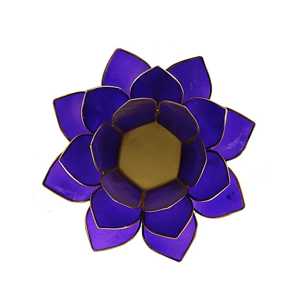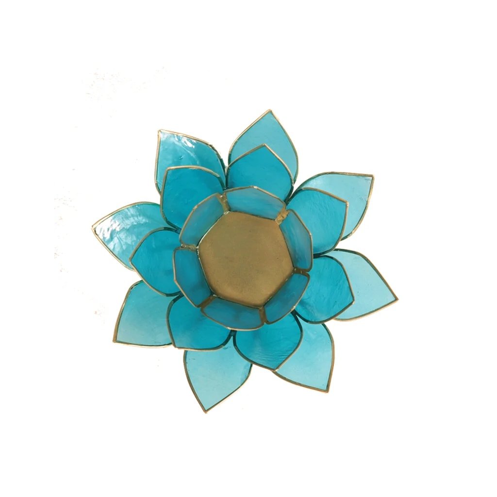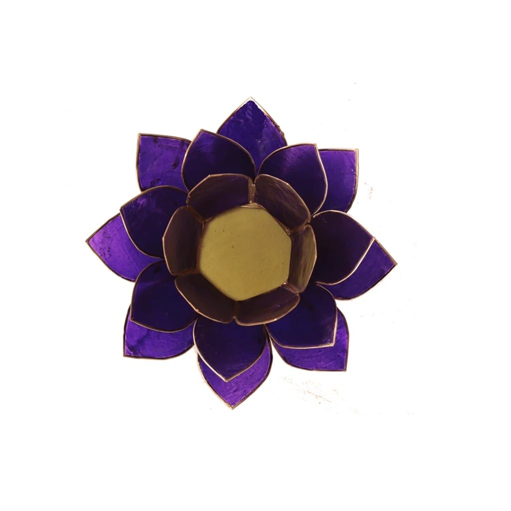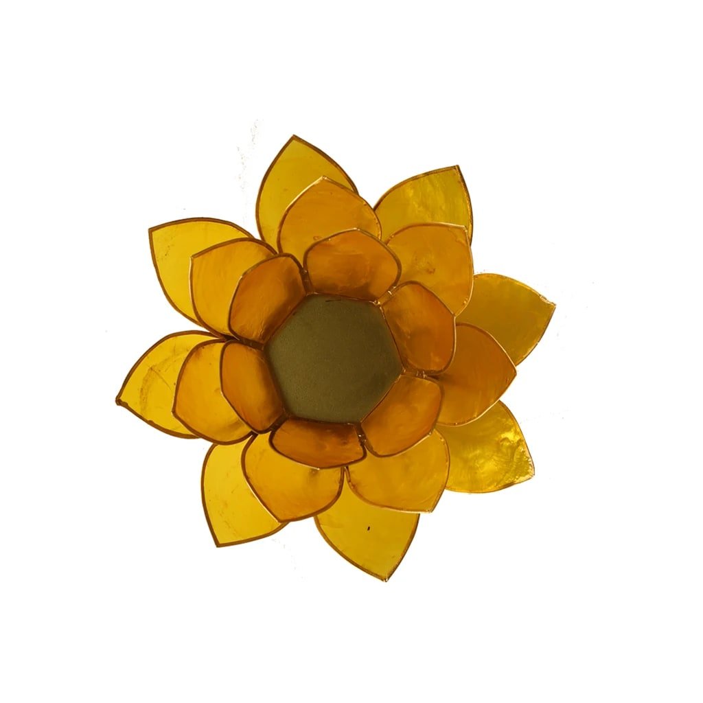 7 db, Capiz kagylóból készült, arany díszítésű gyertyatartó készlet. A lótusz az emberi test 7 energiaközpontját szimbolizálja. A csakrák energiaközpontok a gerinc mentén. Minden csakra rezonáns színben vibrál, és a test bizonyos szerveihez és területeihez kapcsolódik.Több információ
