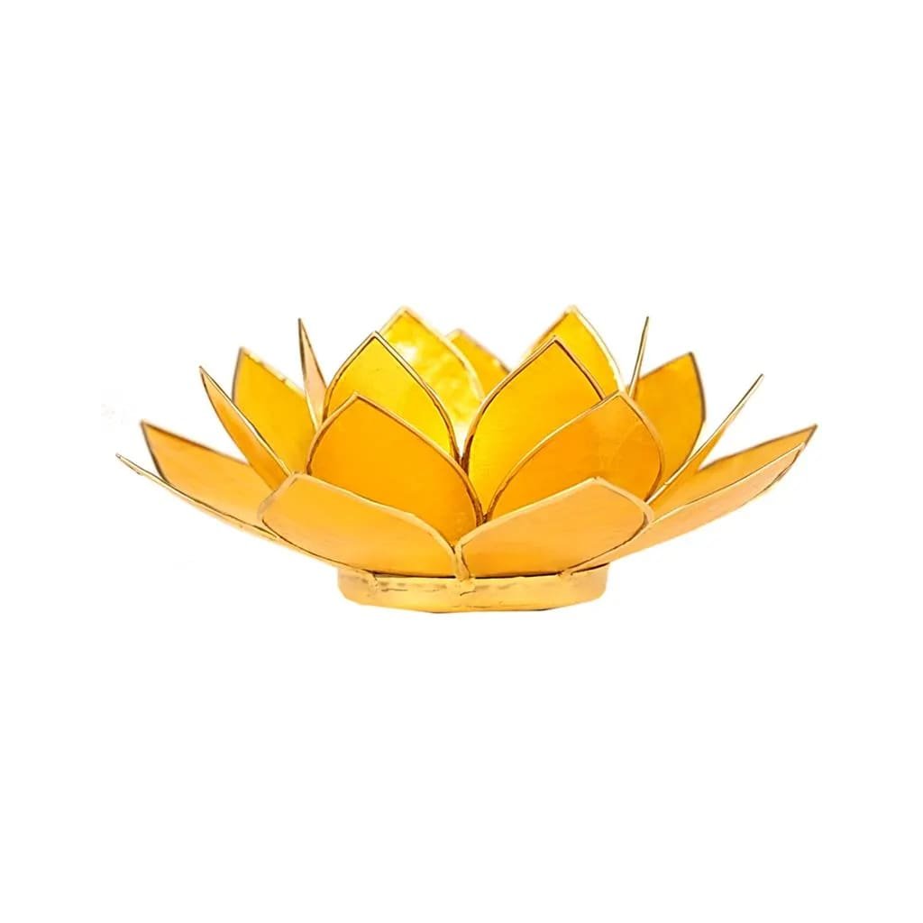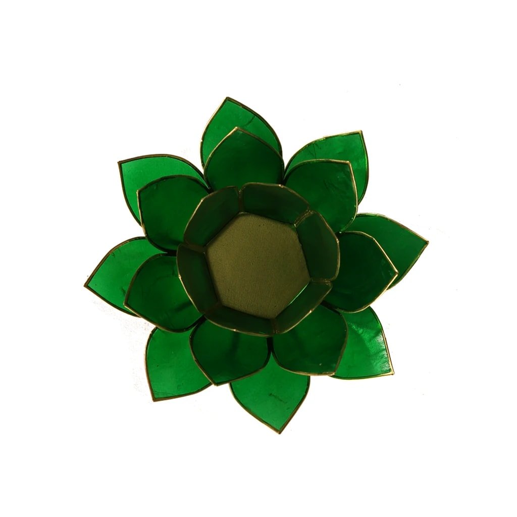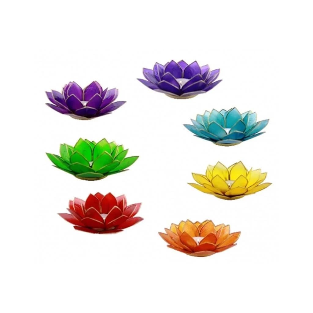 7 db, Capiz kagylóból készült, arany díszítésű gyertyatartó készlet. A lótusz az emberi test 7 energiaközpontját szimbolizálja. A csakrák energiaközpontok a gerinc mentén. Minden csakra rezonáns színben vibrál, és a test bizonyos szerveihez és területeihez kapcsolódik.