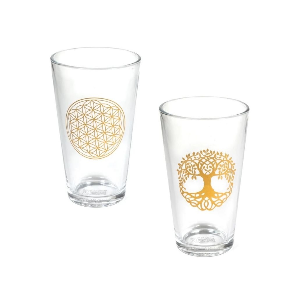 480 ml-es üveg poharak, az Élet virága, vagy az Élet fája mintával.