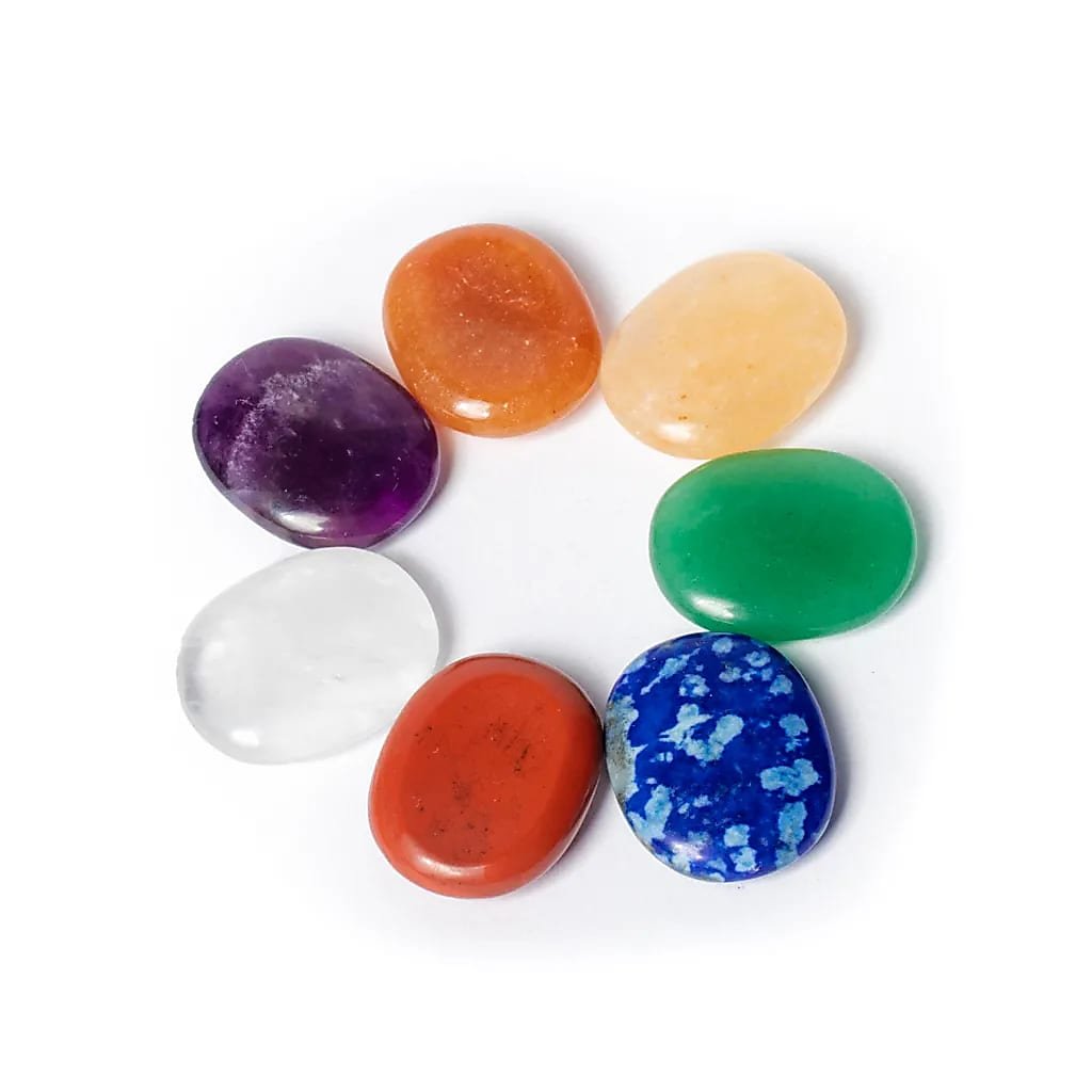Worry Stone csiszolt ovális féldrágakő készlet a nyugtatáshoz - 7 csakra 2,5 cm